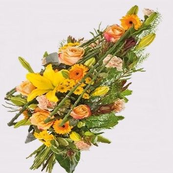 Horus, gerbe de fleurs variées de saison et feuillage. Ton rouge et blanc. Avec A Fleur d'eau livraison fleurs au crématorium Mulhouse, Sausheim, Bron, Lyon, crématorium Villefranche, Gleize, Héricourt, Montbeliard, Belfort, Crissey, Le Creusot, Mâcon, crématorium Le Mans, Ruaudin, Chambéry, Annecy, Bonneville, La Baume de Sillingy, Paris, Père Lachaise, Le Havre, Rouen, crématorium Yvetot, Niort et sur toutes les villes de France